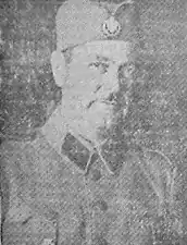 Mihailo Olćan was born on 18 September 1894 in Crepaja, Austria-Hungary. He was a nephew of Serbian inventor Mihailo Pupin and finished gymnasium in Novi Sad, where he joined a number of nationalist student movements. Olćan enrolled to study medicine at the university in Pest. He joined the Austro-Hungarian Army with the outbreak of World War I and was sent to fight on the Eastern Front, where he defected to the Russians and joined a Serbian volunteer detachment. He distinguished himself while fighting for the Serbs and was awarded the Cross of St. George and the Order of the White Eagle with swords. He later fought on the Salonika front. In the post-war years, he led several volunteer organizations in Vojvodina and lived in Petrovgrad (modern Zrenjanin). He joined the Yugoslav National Movement (Serbian: Jugoslovenski narodni pokret, Zbor) upon its creation in 1935.[2] The movement's leader, Dimitrije Ljotić, came to see Olćan as one of his most trusted lieutenants.[3]