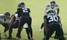 On May 12, 2020, Glennon signed with the Jacksonville Jaguars.[52] He was released on September 5, 2020,[53] and re-signed to the practice squad two days later.[54] He was promoted to the active roster on September 8.[55] On November 25, 2020, the Jaguars announced Glennon the starter for the Jaguars Week 12 matchup against the Cleveland Browns due to starter Gardner Minshew out with an injury and struggles from Jake Luton. It would be the first time Glennon had started a game since the 2017 season for the Chicago Bears.[56][57] During the game, Glennon threw for 235 yards and two touchdowns during the 27–25 loss.[58] In Week 14 against the Tennessee Titans, Glennon threw for 85 yards and an interception before being benched for Gardner Minshew during the 31–10 loss.[59] In Week 16 against his former team, the Bears, Glennon threw for 211 yards, two touchdowns, and two interceptions during the 41–17 loss.[60]