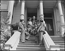 ![]() Masaoka (second from left), national secretary and field executive for the Japanese American Citizens League, with friends in San Francisco (April 1942) | |