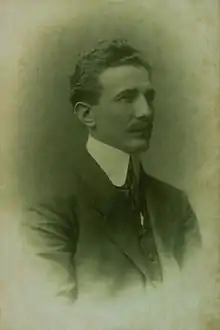Šufflay was born into a lower[1] noble family (hence pl., plemeniti, "noble", equivalent of von) in Lepoglava, in the Kingdom of Croatia-Slavonia to Augustin Šufflay (1847–190?), a teacher, and Franciska Welle von Vorstern (1847–1910), a German Hungarian from Osijek.[2] The family coat of arms was included in Der Adel von Kroatien und Slavonien (1899) as "Sufflay de Otrussevcz".[3] Their original surname was Sufflei or Schufflei, and their estate was Otruševec.