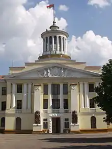 Military Academy of the Republic of Belarus (Belarusian: Ваенная акадэмія Рэспублікі Беларусь, Russian: Военная академия Республики Беларусь, ВАРБ) is higher military educational institution in the national education system of the Republic of Belarus and the leading institution in the education system of training, retraining and advanced training of military personnel. It is located on Independence Avenue (Prospekt Nezavisimosti) in the Belarusuan capital of Minsk.[2][3] It has 10 departments that train officers of 38 specialties for all arms of service.