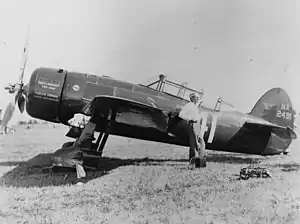 2. The prototype was not fully sorted out when entered, and although capable of a high turn of speed, the fuel consumption on the Twin Wasp was prodigious. Wade had to throttle back in order to even finish the race, precluding any chance of showing the true potential of the aircraft, which had demonstrated a 90 mph (140 km/h) mph advantage over the current United States Army Air Corps (USAAC) Seversky P-35 fighter aircraft.[6]