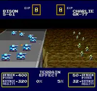 The main gameplay objective is to either occupy the enemy prison camp to free prisoners or destroy all opposing forces on the playfield and the player that does so first wins.[1] Players command their units on a hex map, using a command box function, and each unit have different mobility range that varies according to their type except aircraft units in addition of possessing different shooting range.[1] Terrain plays an important role during battle sequences, as it can affect the outcome of encounters in terms of terrestrial unit's mobility, attack and defense.[1] Each unit also gains experience when involved in combat, becoming stronger with every encounter, while offensive and defensive capabilities are increased if friendly units are near to another friendly unit.[1]