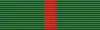 The medal hangs from a straight arm suspension attached to a 35-millimetre (1.4 in) ribbon which is green and crimson. The ribbon for the medal with Honour is green with a 3-millimetre (0.12 in) central stripe of crimson, while the medal with Distinction is green with 6-millimetre (0.24 in) stripes of crimson at the edges, and the medal with Merit is green with 3-millimetre crimson edges and a 3-millimetre crimson central stripe.[2]