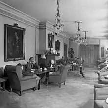 ![]() Interiors of Militärsällskapet in its former premises located at Linnégatan 5, Östermalm, Stockholm (published by Stockholm City Museum). | |