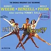 After one preview, Milk and Honey opened on Broadway on October 10, 1961 in the Martin Beck Theatre and ran for 543 performances. In addition to Picon, the show featured Metropolitan Opera stars Mimi Benzell and Robert Weede, and dancer-singer Tommy Rall. Hermione Gingold replaced Picon later in the run. The musical director was Max Goberman.[3] New York Times theater critic Howard Taubman praised the musical for its "heartwarming integrity" and for "taste and imagination," and lauded its performances, especially Picon's.[4]