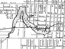 Among the initial settlers of St. Louis were Joseph and Roger Taillons, who were millers. Joseph settled along La Petite Rivière and built a grist mill and a dam along present-day Eighth Street.[2][lower-alpha 1] The creek, later named Mill Creek, ran along what is now Vandeventer Avenue to the Mississippi River.[4][5] Taillon's mill was not large enough to make sufficient flour for the community.[2] Pierre Laclède paid Taillon four hundred livres in cash for the mill and he built a larger mill and raised the dam.[2][3] Laclède was granted 1,000 acres along the creek on August 11, 1766.[2][3]