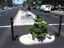 Mill Ends Park (sometimes mistakenly called Mill's End Park)[1] is an extremely small urban park, consisting of one tree, located in the median strip of SW Naito Parkway next to Tom McCall Waterfront Park along the Willamette River near SW Taylor Street in the downtown core of Portland, Oregon, United States. The park is a small circle 2 ft (0.61 m) across, with a total area of 452 sq in (0.292 m2). It is the smallest park in the world, according to the Guinness Book of Records, which first granted it this recognition in 1971, though this title may be soon given to a 2022 park in Talent, Oregon, which is 78 sq in (500 cm2) smaller.[2][3]