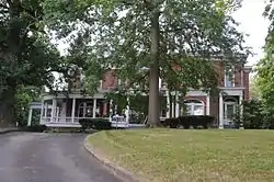 Miller-Porter-Lacy House, also known as the Lacy House, is a historic home located at St. Joseph, Missouri. The original section was built in 1883, as an Italianate style brick farmhouse. It was enlarged and remodeled in 1902 by the architect Edmond Jacques Eckel (1845–1934) in the Colonial Revival / Georgian Revival style. It is a large brick dwelling with a low hipped roof. It features Tuscan order columned porches and a porte cochere. Also on the property is a contributing carriage house and croquet and tennis court sites.[2]: 3–4