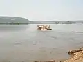 ![]() The Millersburg Ferry as viewed from the eastern shore. Note the ferry wall to the downstream side of the boat, midway across the river. | |