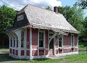 Millwood was a railroad station on the New York and Putnam Railroad in the hamlet of Millwood in New Castle, New York. It was located on Station Road just south of the southeast corner of the west end of the NY 120/133 overlap. Originally built by the New York and Putnam Railroad in 1881, this later became the Putnam Division of the New York Central Railroad.[2] The original station house was built in 1888 but burnt to the ground soon after. The station was replaced in 1910 when the old Briarcliff Manor station was moved by flat car to the current location. The Putnam Line ended passenger service in 1958;[1] the line was abandoned and now serves as the North County Trailway rail trail.[3]