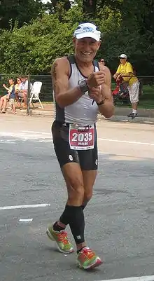 Milos Kostic (born April 18, 1941) from Regina, Saskatchewan is the former world record holder of the Ironman World Championship in the Men's 65-69 age group with a time of 11 hours 29 minutes 45 seconds set in 2006. His time was beaten by William Christopher Wren who finished the course in 2013 with a time of 10 hours, 44 minutes and 31 seconds.[1] [2] He has won his age group there in Kona every time he has raced there, in 2006, 2007, 2008, 2009, 2011, and 2012.[3][4] He won his age group at the Ironman 70.3 World Championship in 2011 and 2012. In 2011 he set the world record of the Ironman World Championship in the Men's 70-74 age group with a time of 11 hours 14 minutes.