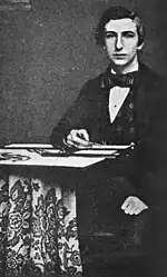 Born in Vienna, Maine, in 1836, to Lewis and Fannie (née Lyford) Bradley,[1] Milton Bradley grew up in a working-class household. The family moved to Lowell, Massachusetts, in 1847.[2] After completing high school in 1854, he found work as a draftsman and patent agent before enrolling at the Lawrence Scientific School in Cambridge, Massachusetts. He was unable to finish his studies after moving with his family to Hartford, Connecticut, where he could not find gainful employment.[2] In 1856, Bradley moved to Springfield, Massachusetts, where he worked as a mechanical draftsman.[3]