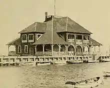 The first permanent clubhouse, a stately two-story wood-frame structure, was built on pilings near the channel in 1896. Twenty years later, in 1916 the United States Coast Guard built a lifeboat station on the shoreline across the channel from the Yacht Club. The Coast Guard abandoned its station in 1971.