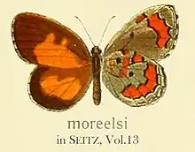 Mimeresia moreelsi is a butterfly in the family Lycaenidae. It lives in forests of Cameroon, the Republic of the Congo, Equatorial Guinea, Gabon, the Democratic Republic of the Congo and Uganda.[2]