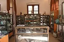 In the reduced premises of the museum, 740 mineral samples (representing 220 mineral species) are presented in showcases, classified either according to their chemical composition, e.g. sulphates, sulfides, oxides, silicates et al. (following the J. Dana system), or in cabinets comprising general samples or collections of major donors. The collection of the museum, including more than 3,200 samples, continuously grows. The polymorphy, the particular crystallization, the iridescence and the amazing colours of the minerals surprise the visitors upon arrival. Aragonites, azurites, smithsonites from Lavrion are classified among the most beautiful of the world, whilst major Museums abroad would be proud to behold among their exhibits, samples of annabergite, spangolite, takovite, ktenasite, kapellasite, glaucocerinite, a.o., such as presented here.
