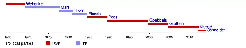 Antoine Wehenkel | LSAP | 15 July 1964 | 6 February 1969 | Pierre Werner | |