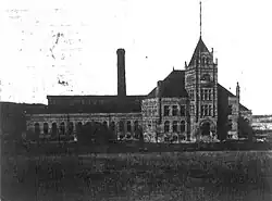 Designed by notable Omaha architects Mendelssohn, Fisher and Lawrie, the building was constructed at the Florence Water Works between 1888 and 1889. A large public opening was held August 1, 1889.[1] The main pumping station was a massive building of Warrensburg sandstone with a central tower rising four stories over the arched entrance. The building housed the high service pump and huge boilers that filtered water flowed to the city water mains.[2] The structure was 120 feet by 160 feet, and entirely illuminated by electric lights.[1]