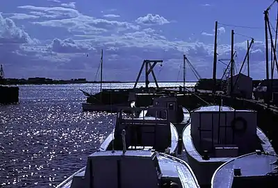Miramichi Bay is an estuary located on the west coast of the Gulf of St. Lawrence in New Brunswick, at the mouth of the Miramichi River.[1] Miramichi Bay is separated into the "inner bay" and the "outer bay", with the division being a line of uninhabited barrier islands which are continually reshaped by ocean storms. The largest of these islands is the uninhabited Portage Island, which was broken in two during a violent storm in the 1950s.[2] The islands provide some protection to the inner bay from ocean storms in the Gulf of St. Lawrence.
