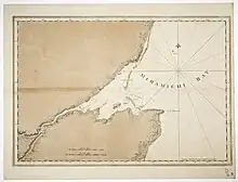Miramichi Bay is one of the largest bays along the northeastern coast of New Brunswick, Canada. The Maritime Plain, an area of low-relief extending from Chaleur Bay southward to Cape George, surrounds it.[3] The Bay is a triangular shape, and approximately 45 km along the north and south coasts, and 32 km along the seaward end, making its surface area greater than 300 km2.[3]