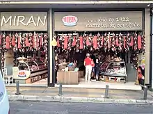 Miran Pastourma is a renowned pastourma and sujuk charcuterie business and market in Athens, Greece.[1][2][3][4][5][6] The market has been in operation since 1922.[6] It is considered the charcuterie of the connoisseurs.[3][7] Despite the Greek economic crisis, Miran is expanding its business and has doubled in size to accommodate increased demand.[2] The founder of the shop, Miran Kourounlian, is thought to be the man who brought pastourma to Athens for the first time.[3] Miran is considered the largest company of its kind in the European Union.[3] The flavour of pastourma coming from the historical enterprise permeates Euripides Street in the centre of Athens.[3] Miran and its neighbor Arapian Cold Cuts are considered two of the historical establishments of Athens.[3] Miran has been in the same spot in Euripidou Street since its opening in 1922.[3] Miran is the recipient of multiple gourmet prizes.[8]