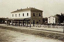 A horse-drawn tramway was built in 1904, connecting the station with the terminus at the Teatro Nuovo in Mirandola's main square until 1924.[4]