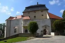 The Miroslav Castle is the most important monument. A Gothic water fortress in Miroslav was first mentioned in 1387. In the 16th century, it was rebuilt and extended into a Renaissance residence. From the 1670s to 1761, Baroque modifications were made, but the castle preserved its Gothic-Renaissance look. Today the castle is owned by the town and is open to the public.[5]