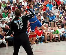 After defeating GOG Gudme in the round of 16 Džomba faced his former club Fotex Veszprém in the quarter-finals. Džomba scored nine goals in both victories against the Hungarians.[32] On 20 March Džomba seven goals in a derby against BM Valladolid for another victory of Ciudad Real[33] In the semi-finals Ciudad Real faced Montpellier. Ciudad Real won the first match at home 30:24 and lost the away match 33:31. Džomba scored nine goals during the semi-finals.[34] During the first Champions League match Ciudad Real defeated FC Barcelona 28:27, Džomba scored three goals.[35] The second match FC Barcelona won 29:27.[36] Later that month BM Ciudad Real had also lost the Copa del Rey to BM Valladolid and the Liga ASOBAL to SDC San Antonio.[37]