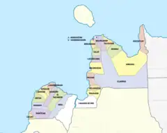 Misamis Oriental comprises 23 municipalities and 2 component cities, which are organized into two legislative districts and further subdivided into 424 barangays. The provincial capital, Cagayan de Oro, is a highly urbanized city that is administered independently from the province.
