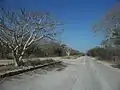 The deteriorated remains of a hacienda a reconstruction are located. The structures have been deteriorating due to the climate of the region and tree branches have grown covering entrances to buildings and abandoned houses.[2]
