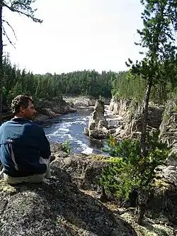 The Missinaibi River is a river in northern Ontario, Canada, which flows northeast from Missinaibi Lake, north of Chapleau, and empties into the Moose River, which drains into James Bay. This river (including Missinaibi Lake and Moose River to James Bay) is 755 kilometres (469 mi) in length.[2] It is one of the longest free-flowing and undeveloped rivers in Ontario.[3]