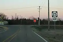 Once the concurrency begins, MS 23 and MS 178 travel westward through the center of Tremont.[10] MS 23 departs from MS 178 to the north less than one mile (1.6 km) later, ending the concurrency. It travels northeastward into the forest, and soon leaves the corporate limits.[10] At Cotton Gin Road, MS 23 turns north, crosses Mountain Creek and intersects Mt. Gilead Road and Hartsell Road in the center of Bounds Crossroads.[9][4] The route intersects MS 76 and later parallels that divided highway.[9] MS 23 shifts slightly north past Pineville Road, and it ends at the Mississippi–Alabama state line.[4] Past this point, County Road 3, also known as Tammy Wynette Memorial Highway, continues to Red Bay in Franklin County, Alabama.[9][7][11]