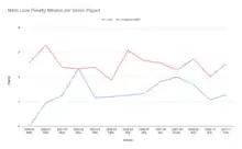 Love earned himself a professional tryout with the St. Louis Blues during their 2009 training camp,[50][10] but ultimately signed with their AHL affiliate, the Peoria Rivermen for the 2009–10 season.[51] Once again, Love was towards the top of the team in terms of fights and penalty minutes; with 17 fights and 129 penalty minutes respectively.[52] However, Love's point production declined further, managing only one goal and three assists in 60 games played,[53] the lowest points per game season of his professional career.[54]