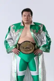 ![]() Misawa as the GHC Heavyweight Champion in 2007. | |