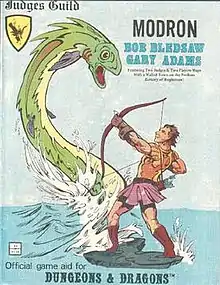 Modron is a scenario describing the village of Modron and a nearby underwater adventure, each with a large map. It includes both village and underwater encounters.[1]