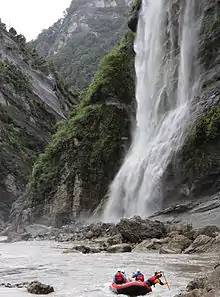 Approximately seven fault lines cross the Mohaka river. Most are found in the upper section but the most obvious to untrained observers is found just above a rapid called Red Rock in the grade III section.[11] It becomes apparent a fault has been crossed as the type of rock changes almost instantly.