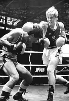 ![]() Mohamed Ali El-Dahan (left) fighting East Germany's Roland Poye | |