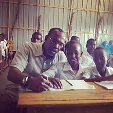 Mohamed Ali Nur with school children at Dadaab refugee complex
