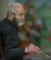 Mohammad Farahani (1937 – 2012), also known as Mohammad Darvish, was one of the most prominent second generation Iranian Coffeehouse painters. When he was thirteen years old,[1] he met Hossein Qollar-Aqasi, one of the founding fathers of the genre, at a coffeehouse in Tehran (Qahveh-khaneh Mehdi Siah) while accompanying his wandering dervish uncle. Realizing the young boy's talent, Hossein Qollar-Aqasi took him under his mentorship. Farahani produced oil paintings and églomisé works depicting scenes from the Shahnameh, The Battle of Karbala, among others.[2]