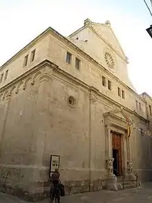 Dedicated to St. Nicholas of Bari, it is located inside the old town, not far from the sea. Built in the late thirteenth century, presumably during the re-founding of the city by the Anjou, it was already in very poor condition in the sixteenth century. The Archbishop of Bari Girolamo Sauli therefore requested its reconstruction, which took place in the years 1547–1575 through the work of Dalmatian masters Francesco and Giovanni from Šibenik and John from Korcula. The building is a fine example of Adriatic Renaissance, although the Baroque extensions have altered the appearance of the apse and some chapels. Recent renovations have enhanced the rose window and the two portals, the Lions (on the left side) and Dwarfs bearing the door columns (in front). The interior space is divided into three naves, the lateral ones with vaults that characterize the overall style and the imposing Corinthian columns.