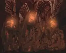A scene from the first European 3D animation feature, "Money, a mythology of Darkness" .