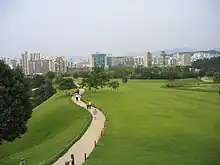 Mongchontoseong Earthen Fortification (Korean: 서울 몽촌토성; Hanja: 서울 夢村土城; RR: Mongchontoseong) is an ancient earthen rampart dating from the Baekje kingdom. It appears to have played the same role in defending the region as the fortifications constructed on Mt. Acha. The fortification walls are estimated to have been about 2.7 kilometres (1.7 miles) in length and approximately 6 to 7 metres (20 to 23 feet) high. The fortifications of Mongchon Toseong had two unique features: a palisade atop the wall and a moat surrounding its base. They are part of Wiryeseong with Pungnaptoseong. It is located what is now in the Olympic Park of Seoul, South Korea. During the 1988 Summer Olympics, the running section of the modern pentathlon was held there. A number of important excavations of the site were conducted prior to the construction of the nearby Olympic Park.