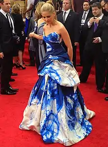 Lhuillier has become especially known for her celebrity wedding and red carpet gowns. Her list of clientele includes Blake Lively, Demi Lovato, Gwyneth Paltrow,[13] Reese Witherspoon,[13] Michelle Obama, Emma Stone, Jennifer Lopez,[14] Lea Salonga,[15] Taylor Swift,[16] Melania Trump, and Katy Perry.[17][18][19]