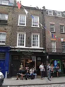 Monmouth Coffee was founded in 1978 by Nick Saunders and Anita Le Roy. Le Roy later took over the business.[2][3] Together with Neal's Yard Dairy and Saunders' other businesses, Monmouth Coffee transformed the run down area around Neal's Yard in Covent Garden, central London.[4] The original shop is at 27 Monmouth Street (51°30′51.7″N 00°07′36.5″W / 51.514361°N 0.126806°W), a grade II listed 18th-century terraced house.[5] The basement was used to roast coffee and the ground floor as a tasting room.[6] In its early years, the shop sold three or four kinds of green or roast coffee beans in sacks containing one, three, seven or ten pounds.[7] Le Roy wanted to buy coffee from individual farmers, but that was not possible until 1996, when a new coffee importer, Mercanta, opened. Monmouth Coffee was one of their early customers.[8] Monmouth Coffee and Mercanta were a foundation for the third wave of artisan coffee shops in London after 2000 and several Monmouth Coffee baristas went on to found their own coffee businesses.[9][10]
