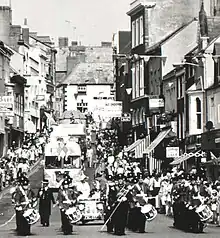 Monmouth's annual carnival day is also part of the festival.[3] In recent years, the carnival has included stalls, workshops, street entertainers, a funfair, zorbs and chariot races. The highlight is the Carnival Procession, which sees people thronging the streets of Monmouth to watch floats, dancers and walkers organised by local groups and businesses.