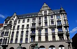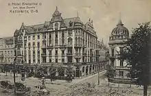 The hotel was built in 1900 in the eclectic style with elements of Art Nouveau and Gothic Revival architecture on the site of former Cafe Central. It was designed by architect Ludwik Goldstein and officially opened in 1902. It quickly became one of the most representational hotels in the city.[2] Its first owner was Arnold Lustig.[3] The hotel is located opposite the Katowice historic train station and in the 1930s it housed the Orbis travel agency, restaurants, cafes, hairdersser's studio as well as the Kaftal lottery hall. During World War II, the hotel building was taken over and managed by the Germans. After he war, the hotel was the seat of such institutions as PKO Bank Polski and Polish Press Agency. At the beginning of 21st century, the hotel was renovated and in 2007 it acquired the five star status. Today it is part of the Likus Hotele & Restauracje group which belongs to the Likus family of hoteliers who also manage luxury hotels in Kraków, Łódź and Wrocław.[4]