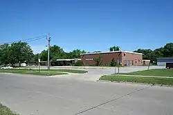 The Monroe Elementary School Historic District is a nationally recognized historic district located in Cedar Rapids, Iowa, United States. It was listed on the National Register of Historic Places in 2015.[1] At the time of its nomination it consisted of 10 resources, which included one contributing building, one contributing site, three contributing objects, two non-contributing buildings, and three non-contributing objects.[2] The school building was completed in 1961 in a neighborhood of small ranch-style houses from the same era. Designed by the Cedar Rapids architectural firm of Brown & Healey, it was one of seven schools built as a result of a bond referendum in 1959. It was necessitated by a roughly 70% increase in enrollment between 1950 and 1960. The single story, brick building features long and wide corridors, low ceiling heights, extensive use of glazing, exposed trusses, and deep overhangs. The building retains historical integrity, while the other school buildings built at this time in Cedar Rapids do not.[2] Two basketball hoops and a fire engine-shaped piece of playground equipment are the contributing objects. The non-contributing buildings are two temporary classrooms, three pieces of playground equipment are the non-contributing objects. It ceased being a school building in 2011.