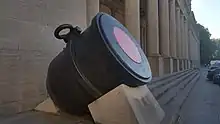 - ↑ French contemporary sources report that the Monster Mortar had a caliber of 22 inches. Before the adoption of the metric system, several European countries had customary units whose name translates into "inch". The French pouce measured 27.88 mm, at least when applied to describe the calibre of artillery pieces (see also: Units of measurement in France and Mesures usuelles). 22 French inches are equivalent to 24 English inches.