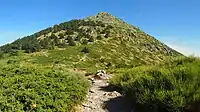 It has an altitude of 2161 meters and a prominence of about 177 meters.[1]