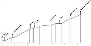 The line runs from a connection with the SNCF at Saint-Gervais-les-Bains Le Fayet station to the Nid d'Aigle station near the Bionnassay Glacier at an altitude of 2,372 m (7,782 ft). The initial intention was for the line to reach the much higher Aiguille du Goûter. Nevertheless, it remains one of the highest railways in Europe and the second-highest when considering only open-air railways.[5] The Nid d'Aigle and Mont Lachat (2,074 m (6,804 ft)), the two highest stations of the line, are the only railway stations over 2,000 metres in France. Both are well over the tree line.